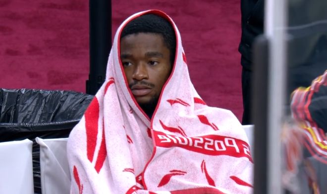 末节最后31秒,胡明轩还在一次乱战中获得了超级弧顶大空位的三分机会,但接下来他在无人看管的情况下,出手将球砸到了篮筐前沿,这一回合对广东队来说也是损失惨重,虽然后续奎因抢到了篮板被琼斯推出界外,但被裁判张磊吹罚浙江球权。