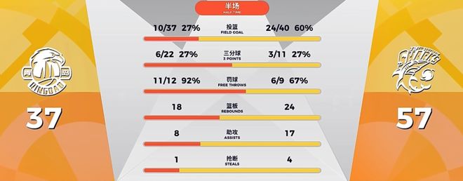 青岛男篮的投篮命中率很低仅有11.1%,并且在篮板球方面6-17大幅落后上海男篮。首节比赛结束,上海男篮33-8领先青岛男篮25分。