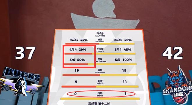 第二节北京山东各扔进4记三分,山东技高一筹,半场5记三分(11中5),罚球5中5,除了陈林坚于德豪没得分外也是多点开花,而北京罚球仅6中3,三分仅14中4,半场山东42-37领先北京!北京抢断转换快攻得分为0,替补得分也为0,全队就指望杰曼和斯佩尔曼得分了(双曼半场26分)。