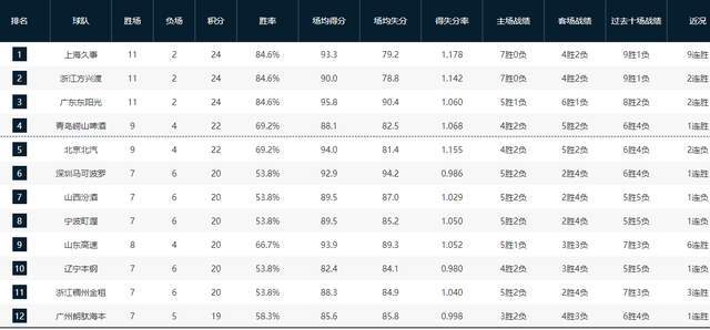CBA排名又乱了!上海九连胜独占鳌头,北京跌第五,山东逼近前四