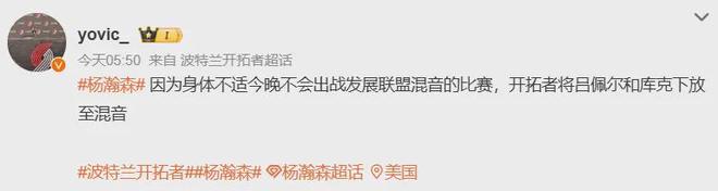 据悉包括杨瀚森在内,半支开拓者都遭受到了感冒侵袭......