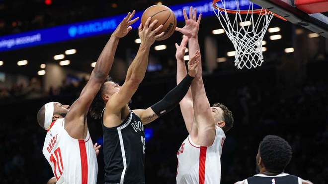 阿尔佩伦·森根和火箭队对阵篮网队的比赛