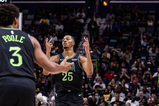 值得一提的是,这场赛后,詹姆斯职业生涯和蔡恩的交手次数来到了10次,战绩9胜1负。前9次对决,詹姆斯场均可以得到29分8篮板10助攻。蔡恩初入联盟的时候可是被称作詹姆斯后最强状元的,可他现在的表现,还不如41岁的詹姆斯。今天蔡恩13投7中,只有15分5助攻4篮板。此外,鹈鹕队今天还迎来了一个核心轮换的复出,他就是赫伯特·琼斯。和湖人队的这场比赛前,琼斯已经缺席了7场比赛。有趣的是,湖人队的引援目标之一,就是赫伯特·琼斯。所以琼斯挑湖人复出,是想让湖人提前验货吗?结果我们都知道了,验货可能失败了。因为琼斯打了35分钟,9投1中只得到3分……