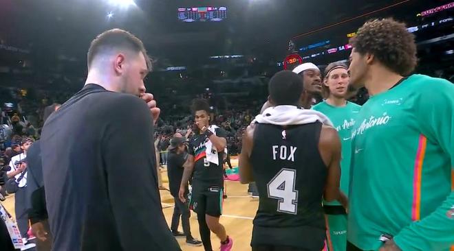 即便终场哨声早已吹响,湖人和马刺两队在弗罗斯特银行中心球馆的火药味仍未消散。本场比赛湖人以91-107不敌马刺,三连胜的势头被终结。当两队球员陆续离场时,湖人前锋范德比尔特与马刺前锋索汉发生口角争执,随后范德比尔特伸手戳向索汉的面部,这一举动立刻引发马刺前锋朱利安・尚帕尼的不满,后者直接上前将范德比尔特推开,双方球员险些因此爆发大规模斗殴。 此役湖人选择让勒布朗・詹姆斯轮休,缺席背靠背赛程的第二战,球队战绩也因此变为23胜12负。