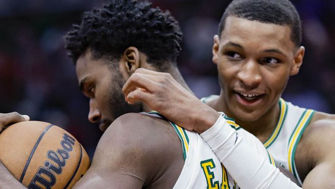 甚至很多人发现,在暑期一直跟着杜兰特训练的小史密斯,在进攻方面的技巧也有很大升级,他不再像以前只是作为定点投手存在,在多场比赛中,人们都能看到他持球突入内线的进攻选择, 并且能拿到不错的结果。