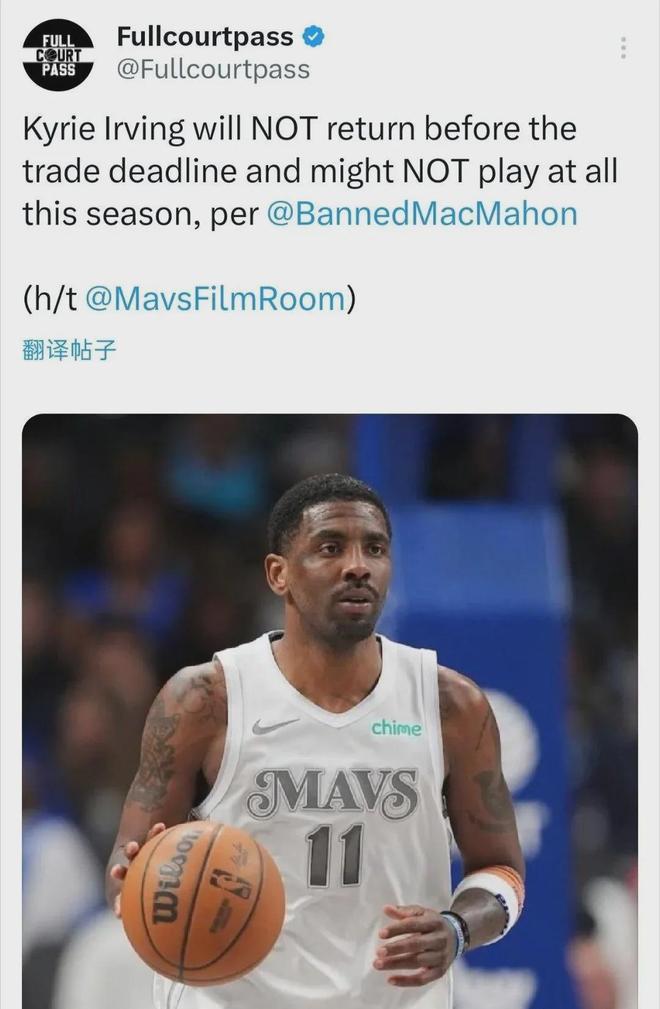 顺带提一嘴欧文,预计不会在今年交易截止日(2月6日)前复出,也有可能赛季报销,他于去年三月初比赛中遭遇左膝前十字韧带撕裂,已伤停10个月。