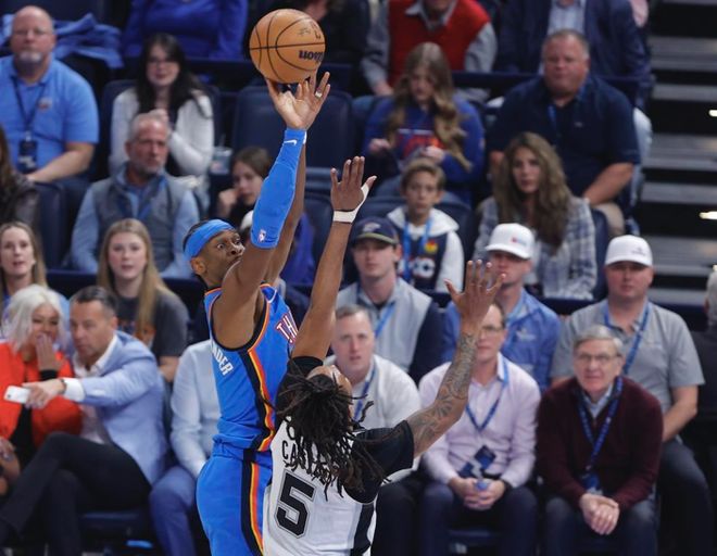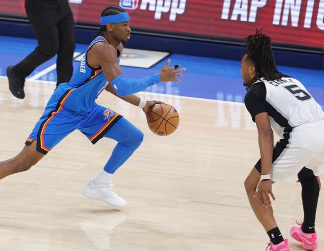 亚历山大这次打了33分钟,23投11中,罚球13中11,拿到34分5篮板5助攻,还有4次盖帽,这也追平他生涯最高,正负值+29。这一次亚历山大攻防两端都有着火热的表现,帮助球队拿下胜利,即便是霍姆格伦只有8分的情况下。此外,亚历山大本场送出4次盖帽,比马刺全队(3次)还多1个。