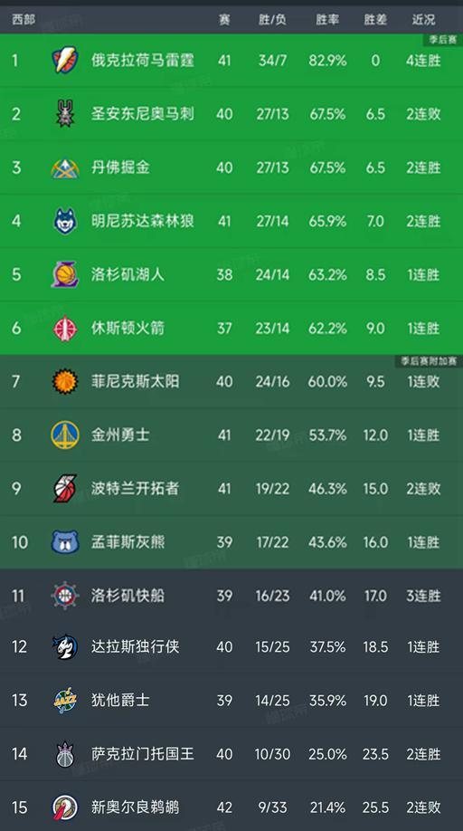北京时间1月14日,今日的NBA常规赛结束了所有比赛,我们看看竞争激烈的西部最新积分榜变动!