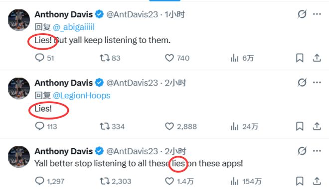 前,名记Shams率先报道,戴维斯预计将接受左手韧带修复手术,缺席赛场数月。戴维斯对Shams的报道予以否认,并通过社交媒体进行反驳。“大家最好别再相信这些平台上的谎言了。”戴维斯在社媒上写道,随后又在多条援引这一突发新闻的帖子下回复“谎言”二字。在今天将前往洛杉矶与手部专家会面后,浓眉确定无需接受手术。Shams随后也修正了自己的报道,不过未来六周,浓眉是肯定无法出场了。