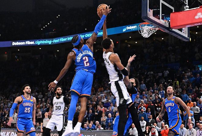 问题的关键,就压到亚历山大身上。本赛季亚历山大场均31.9分4.5篮板6.4助攻,三项命中率54%+39%+88%。亚历山大已经做到连续111场得分超过20+,本赛季出战的39场比赛,拿到30+的场次是28场,占比72%。最近一场和马刺的第四次对决,亚历山大全场轰下34分5篮板5助攻,这没什么,关键还有4次盖帽,带队大胜马刺复仇。这也是亚历山大第三次砍下至少30+5+5+4次盖帽,和杜兰特并列队史第一!提起亚历山大,总能联想到他的罚球优待,但我们可能忽略了一些深层次的东西。