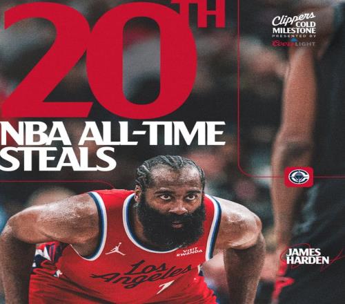 北京时间1月23日,NBA常规赛,快船以112-104击败湖人。这场比赛是哈登的里程碑之战,他的历史抢断数1766+超越伊戈达拉升至第20位。这场比赛哈登的手感依旧不佳21投6中,但他送出10个助攻引来全队7人得分上双,他在关键时刻的选择也是球队制胜的关键。