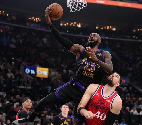 北京时间1月23日,NBA常规赛,湖人104-112逆转快船失败。此役湖人一度落后快船26分之多,进入末节还落后14分,末节湖人有两波小高潮,一波16-7与一波10-2,这两波小高潮都是由41岁的勒布朗带领打出,只可惜湖人还是输球,41岁的勒布朗空砍23+6+5。