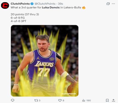 湖人队史首人!东契奇46+11+7+8三分拒逆转单节20分一人战一队