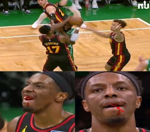 北京时间1月29日,NBA常规赛,凯尔特人主场106-117不敌老鹰。奥孔古在防守杰伦-布朗时,被后者不小心一肘打掉牙齿,画面有些瘆人。