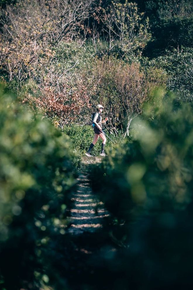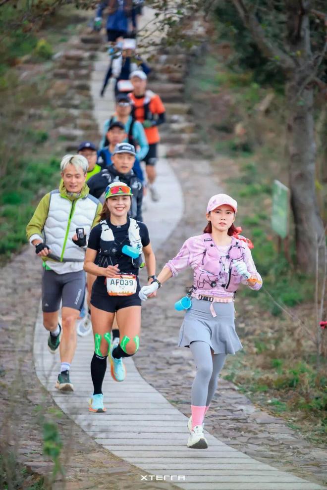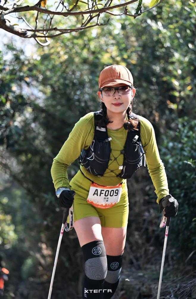 顾琪是来自江苏南通的一位体制工作者, 46岁的她更是一位常年保持健身习惯,热爱路跑、越野以及徒步登山等户外运动的超级辣妈。 从19年开始路跑到去年踏入越野坑,顾琪表示运动于她而言是忙碌工作外的放松方式,是让自己保持活力状态、拓展并滋养生活的秘诀,她不想因为过度追求成绩而丧失运动本身带来的快乐。注重可持续性是她的运动法则——120-150公里的月跑量,每周会做至少5次(单次1小时)有氧训练加3至4次的力量训练;每年仍旧会参加两到三场半马以保持进步动力,但不作为核心追求,至于越野赛,她则注重于享受与自然深度连接、看美景寻放松的过程。 去年虞山雄鹰线的20公里是她的首野,XTERRA的太湖西山赛则是她越野路上的第二次进阶。去年她在这里完成了自己的首个30公里,而今年她将重回西山挑战55公里。“不管是从赛前领物到比赛结束,我觉得XTERRA的赛事是有点东西的。所以去年跑完西山后,今年我又去参加了XTERRA的渔洋山夜跑。”对于顾琪而言,自己虽然没有冲成绩的打算,但是也是有目标的,那就是慢慢稳步进阶到跑完百公里。 根据去年跑完30公里的体感,加上自己没有冲成绩的目标,顾琪觉得如常训练足以。完赛55公里,应该难度不大。所以赛前,她并未做针对性训练。比赛当天,沿途的风景给了顾琪一大惊喜,“我们沿途会经过茶园、到山顶能俯瞰太湖,遍布村落的银杏树树叶黄灿灿的铺在地上……很漂亮。”虽然55公里的赛道难度不小,但是她一直保持着轻松的心态,用她的话说,就是跑累了就休息、走走看看风景,毕竟感受过程也是一种享受。