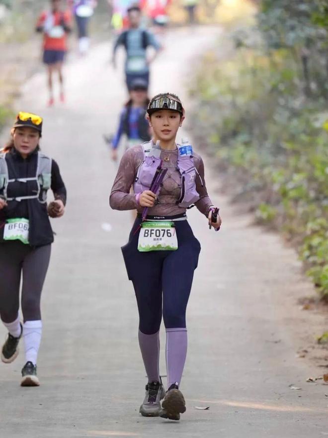 领物现场的拿铁 为了这次比赛,拿铁也做了一些针对训练,也改变了一些训练模式,以往她都是肌肉爆发力训练比较多,今年为了比赛则做了更多肌耐力方面的训练。但比赛当天,生理期造访,却给拿铁的35公里之行蒙上了“痛苦”的底色。 早晨出发时的寒冷夹杂肚子的疼痛、酸疼的腰以及抬不起来的双腿,让她跑得很无力,也让她差点选择退赛。但是略微的不甘心还是支撑着拿铁,让她想要再试一试,直到赛中偶遇了一位小男孩。这位小男孩是跟着徒步的爸爸妈妈一起来的,看见拿铁一个人在跑,还跟着她跑了一段路。“小朋友说有美女姐姐,要跟我一起跑跑,特别可爱”,这一段小插曲冲淡了她路上的疲劳感。好在后面太阳出来后,她也开始逐步适应。想着完赛有很大希望,那就继续往前跑,要是跑不动就走。到达终点前的那一段路是拿铁跑得最舒服的路程,身上没有任何不适和疼痛,她跑得甚至比前程更快。到达终点后,拿铁觉得自己完全没跑够,她说,“明明赛中还想退赛,结果跑完觉得自己还想跑,挺神奇。”