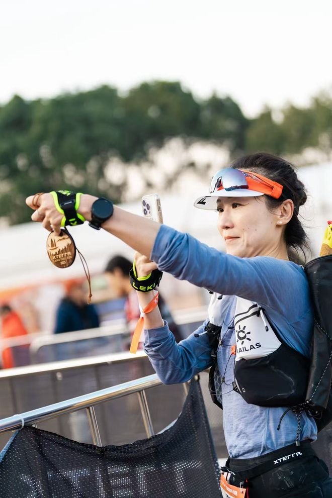 来自上海杨浦的袅袅,是一名社区工作者,日常除了健身之外,也是一位路野双修的爱好者。自2023年由同事带领入坑之后,她就爱上了跑步和越野。 对于路跑和越野的不同魅力,袅袅形容路跑于她像是去得到一个自己喜欢的娃娃,在这个过程中不需要想太多,只需一鼓作气并专注地跑完;而越野则更像开盲盒,更多的挑战是源于未知,但更多的惊喜也源自于来自未知地境的风景和未知陌生人给与的鼓励与帮助。 至于日常的训练模式,袅袅表示路跑这一块儿,自己每周会训练2-3次,单次10-15公里不等,偶尔也会跑跑半马及以下的小比赛;在越野上,因为上海没有可供训练的山,所以她更倾向于通过“以赛代练”去实现自己的拉练。 作为一个对成绩没有执着追求的“随性”跑者,相较“谁比自己跑得更快”或者“你完成了多少公里,真厉害”之类的念头和夸赞,她更喜欢用脚步探寻内心世界的平衡——“所以我每次比赛的目标就是先安全完赛,做自己的NO.1就好。”工作的性质和个人较“宅”的性格让袅袅大多数时候的生活半径都囿于一个社区或者自己的一方小家,在踏入跑步和越野的世界后,她发现自己不仅精神上更丰富了,视野也随之拓宽——每一次山野之行,于她就是一次净化与充能的过程。她在山里纾解工作与生活中的不畅,又在山里重新找回能量用以面对新的挑战。 她既喜欢一群人为一个共同的目标而努力的向上感;也喜欢一个人在山野中沉淀下来倾听自己与自然与自我对话的过程。谈及自己今年为什么会选择参加XTERRA太湖西山的比赛,她表示自己去年就与XTERRA结缘了。去年,她在太湖完成了30公里组别的挑战,最让她印象深刻的是,“一是赛场很热闹,我是差不多在傍晚时分到的,那种天光慢慢褪尽,灯光渐渐亮起的氛围感真的很美好。二是工作人员特别好,我朋友身份证掉了,大家都很着急。最后是在工作人员的帮助下给找到了。而且,太湖的赛道我觉得难度是适中的,也很出片。”所以今年,她选择解锁55公里组别的新体验,至于目标,“安全完赛的情况下尽可能跑快点”。
