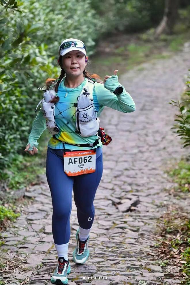 吴京珊在赛前一天还参加了X-PLOGGING “因为这次是和小伙伴一起来的,所以想在太湖西山挑战更高组别的。”吴京珊将自己的目标定在10到11个小时完赛,她不想跑得太晚,也不希望自己跑崩以及跑得特别难受,所以她在赛前做了充足的准备——先是将自己的月跑量增加到了150到200公里,再是参加了训练营,完成了7至8次的线下训练。美丽的赛道、好吃的补给也让她对比赛充满了期待,赛前,她笑道,“希望能跑得更开心吧。” 赛中对于吴京姗来说更像是一次美食聚会。给她留下最深印象的是每一个CP点的美食补给,除了倒数第二个CP点的小鸡腿之外,最后一个CP点热腾腾的羊汤面更是让她念念不忘。 “今天赛道状况不错,一路也都在拍风景,跑得特别开心,但是因为长距离的训练不够,跑到30公里之后跑不动也是真的。”最后,吴京姗以10小时45分成功完成自己的首个55公里,也达成了自己赛前许下的在11个小时内完赛的目标。在下周,她还会去苏州跑一个20公里的小越野。