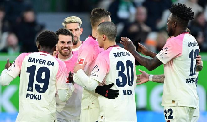 勒沃库森排出3421阵型。希克顶在最前面。马里克-蒂尔曼和霍夫曼联袂出击。格里马尔多、阿莱士-加西亚、马扎和波库搭档4中场。塔普索巴、巴代和安德里希3后卫首发出战。弗莱肯担任首发门将。勒沃库森首发阵容总身价2.15亿欧元。而沃尔夫斯堡首发阵容总身价1.14亿欧元。