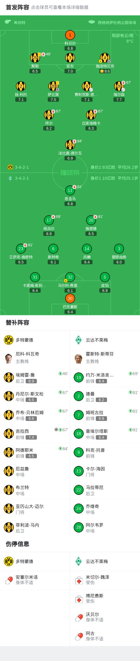 剑南春多特30不莱梅,施洛特贝克、吉拉西、萨比策建功
