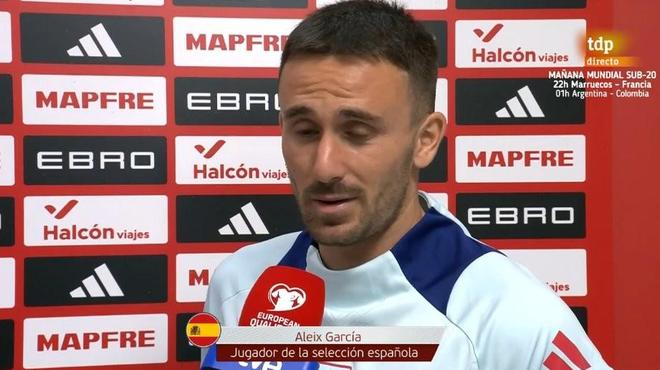 在西班牙4-0大胜保加利亚的世预赛中,勒沃库森中场阿莱士-加西亚造成对手自摆乌龙,为球队将比分扩大为3-0,赛后他接受了RTVE的采访。