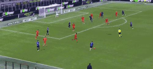 上半场补时第4分钟,同样是角球的机会,赫伊森的头球被门将神奇扑出,马斯坦托诺补射,扳平比分。