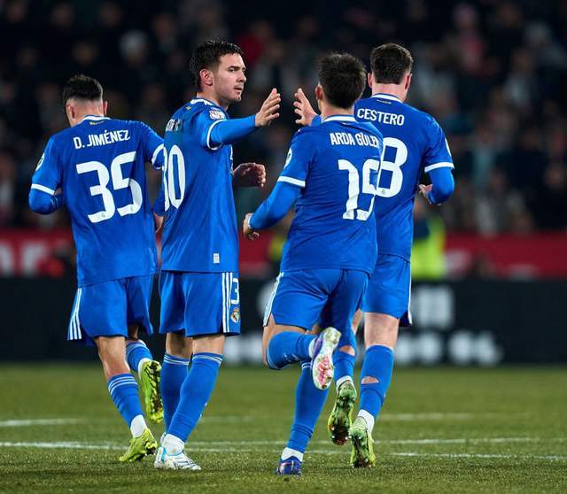 3天前的西班牙超级杯决赛,皇马在国家德比当中2-3惜败,目送死敌巴萨卫冕,弗洛伦蒂诺忍无可忍,正式解雇阿隆索。克洛普在内的大牌主帅拒绝接手的情况下,皇马迅速任命42岁的阿韦洛亚接任,并在这场国王杯迎来首秀。 本场比赛姆巴佩和罗德里戈因伤缺席,贝林厄姆和库尔图瓦同样高挂免战牌,皇马进行大幅度的轮换,威尼修斯、贡萨洛-加西亚和马斯坦托诺联袂三叉戟,巴尔韦德坐镇中场,赫伊森和劳尔-阿森西奥统领四后卫,小将塞斯特罗和戴维-希门尼斯获得信任。