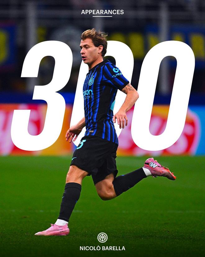 今日对阵那不勒斯,巴雷拉迎国米生涯第300场比赛