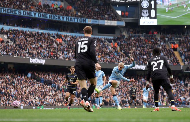 赛季刚开始尝到2连败后,曼城没有让上赛季连败的颓势延续,依靠哈兰德连续的进球表现,蓝月亮国内外赛场捷报频传,英超积分榜上只差阿森纳3分。本周末英超第8轮正式开打,曼城坐镇伊蒂哈德球场迎战埃弗顿,哈兰德5分钟梅开二度,帮助曼城2:0主场全取三分。 埃弗顿上赛季在莫耶斯二进宫之后提前保级,新赛季经过引援后重返正轨,上轮更是终结了水晶宫跨赛季的19场不败。此战哈兰德、多库、福登、萨维尼奥4大攻击手集体首发亮相;赖因德斯、尼科-冈萨雷斯双后腰;努内斯、迪亚斯、阿克、奥赖利组成后防线,多纳鲁马镇守球门。 莫耶斯过往这些年带领曼联,西汉姆,埃弗顿都在伊蒂哈德球场铩羽而归,这位苏格兰老帅这场比赛在防线摆下重兵;这让曼城上半场踢得相当别扭。第11分钟,奥赖利外围选择打一脚贴地斩,皮球偏出底线;第14分钟,曼城还险些丢球,恩迪亚耶横扫门前,得亏是贝托包抄铲射踢疵;第24分钟,曼城角球机会,奥布赖恩头球解围击中横梁弹出差点自摆乌龙。 迟迟未能进球,挺身而出的还是哈兰德;第58分钟,福登左路直塞打穿埃弗顿防线,奥赖利快速跟进前插下底传中,包抄到位的哈兰德门前旱地拔葱顶出强力头球入网,1:0!这是哈兰德赛季第10粒英超进球,这是英超史上第3次有球员赛季前8场进球上双,而且这3次均由哈兰德完成。 第63分钟,福登长传转移,萨维尼奥左侧禁区倒三角停球回敲,哈兰德迎球劲射,皮球穿裆塔尔科夫斯基命中远角,2:0!哈兰德5分钟时间梅开二度;同时他还在俱乐部和国家队已连续11场取得进球。此外哈兰德英超生涯105次出场已打入96球,这使得他在英超历史射手榜上超越范尼,升至第37位,在他身前的是打入98球的阿德巴约。 2球在手,加之下周中又有欧冠的比赛,瓜迪奥拉再次祭出熟悉的控球消耗时间的招数,同时让伤愈复出的科瓦契奇,谢尔基等人找找比赛感觉。最终曼城将2:0的比分保持到全场结束,目前已经是各项赛事8场不败;积分榜上追平了阿森纳的分数。 |