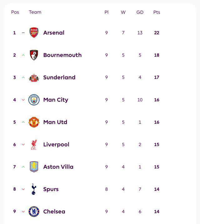 北区大乱!樱桃、黑猫分列英超二、三 英超 10-27 00:27 英超第9轮,积分榜形势大变。伯恩茅斯2比0力克正在经历赛季三次换帅阵痛的诺丁汉森林,各线连续7场不败,18分暂列积分榜第2,身后则是17分的升班马桑德兰,黑猫军团客场2比1爆冷击败豪门切尔西,迎来两连胜,将曼市双雄踩在脚下。