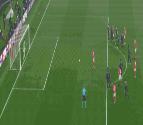 第50分钟,萨拉赫的突破制造了前场任意球,埃及法老亲自操刀,一记完美的弧线,打出世界波。