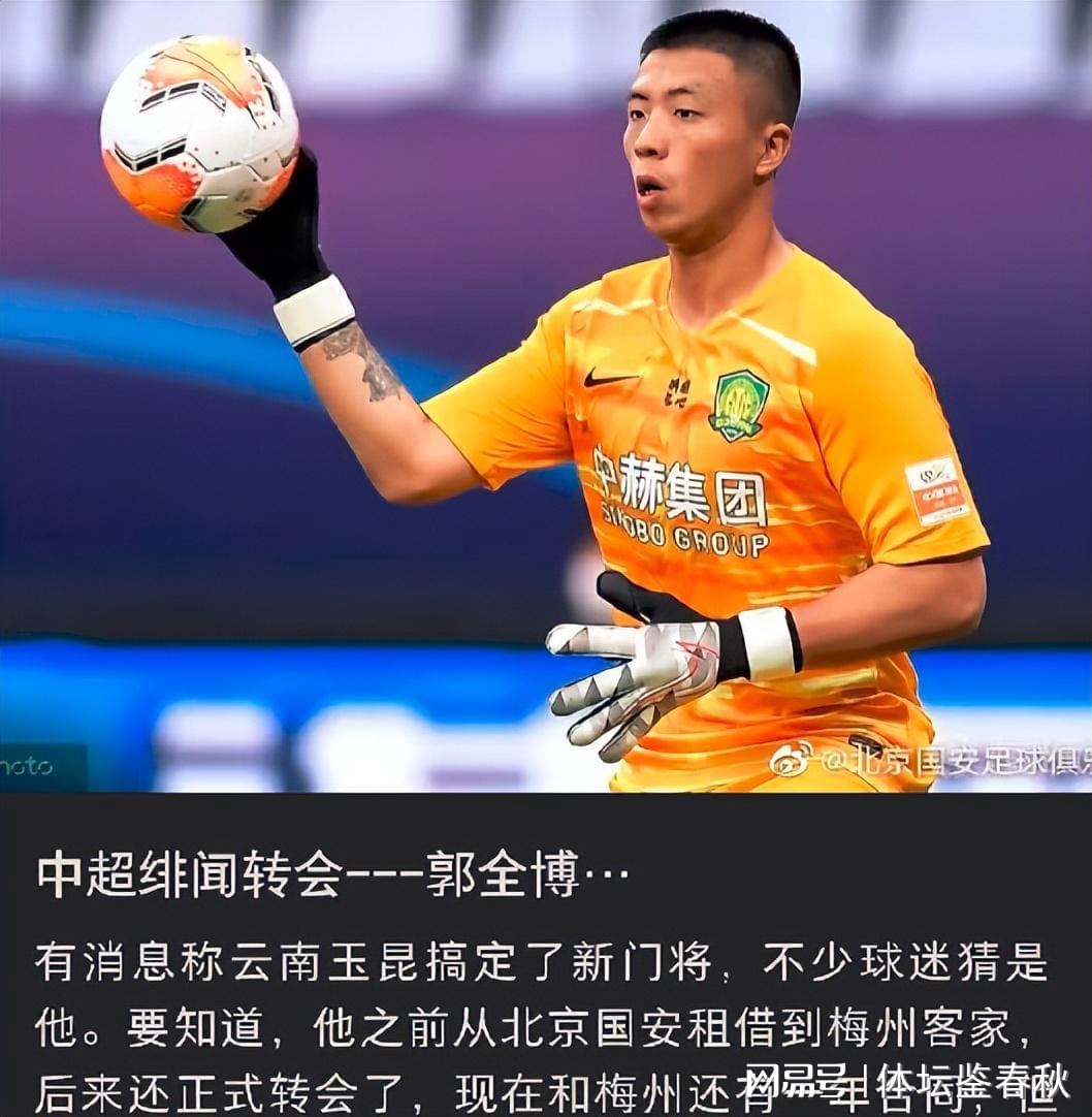 本赛季的中超联赛结束后,球员转会市场成为了众多球迷和媒体关注的焦点,各种转会消息不断。近期,有体育博主透露,中超新军云南玉昆将引进梅州客家的主力门将郭全博。虽然目前郭全博与梅州客家还有合同在身,但考虑到梅州队已经降级,作为昔日国奥队主力门将的郭全博肯定希望下赛季继续留在中超。