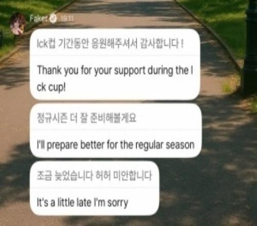 Faker粉丝频道留言:谢谢大家LCK期间的支持,下赛季常规赛我会做更好的准备